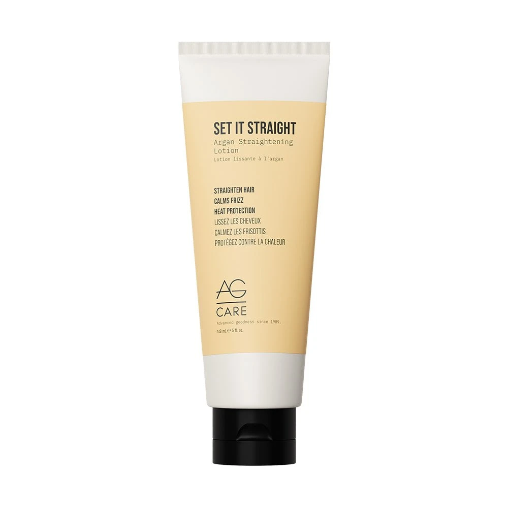 AG Care Set It Straight Argan Straightening Lotion 148ml keeps your hair smooth and frizz-free. This straightening lotion is argan-infused with humidity-resistance and heat protectant.