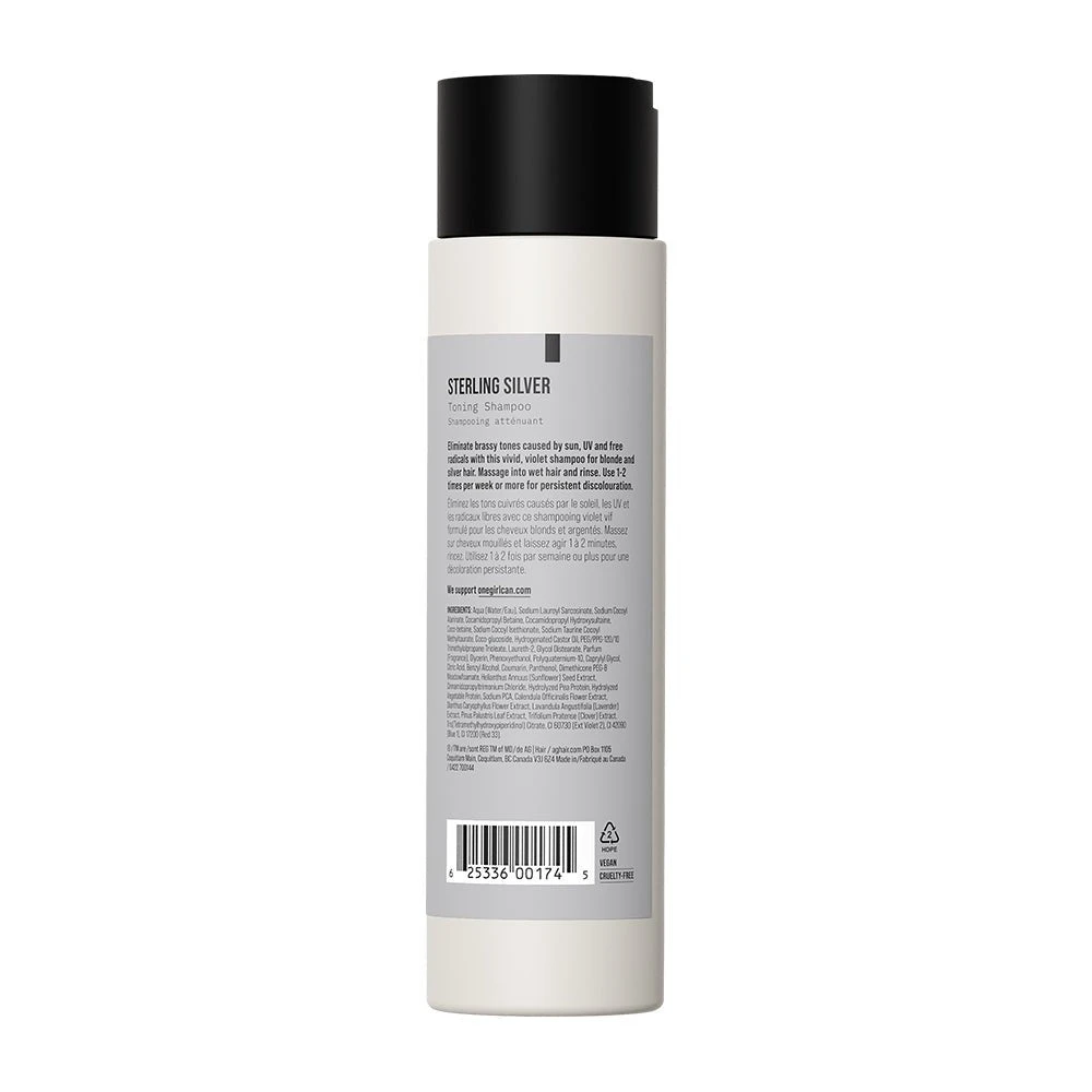 AG Care Sterling Silver Toning Shampoo 296ml eliminates brassy tones caused by sun, UV and free radicals. This vivid, violet shampoo is for blonde and silver hair.Â
