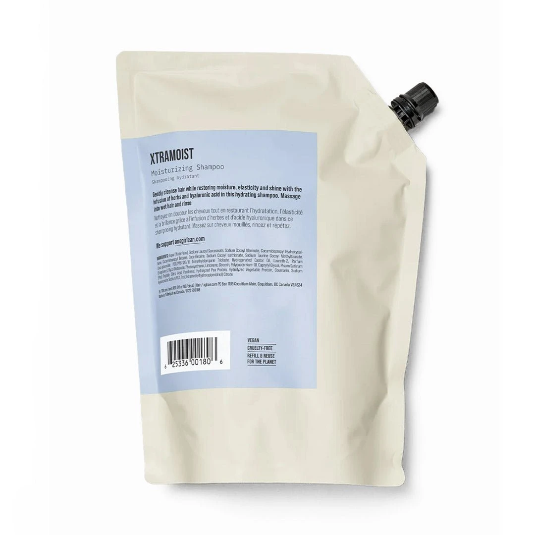 AG Care Xtramoist Moisturizing Shampoo 1L Refill Pouch gently cleanses hair while restoring moisture, elasticity and shine with the infusion of herbs and hyaluronic acid.