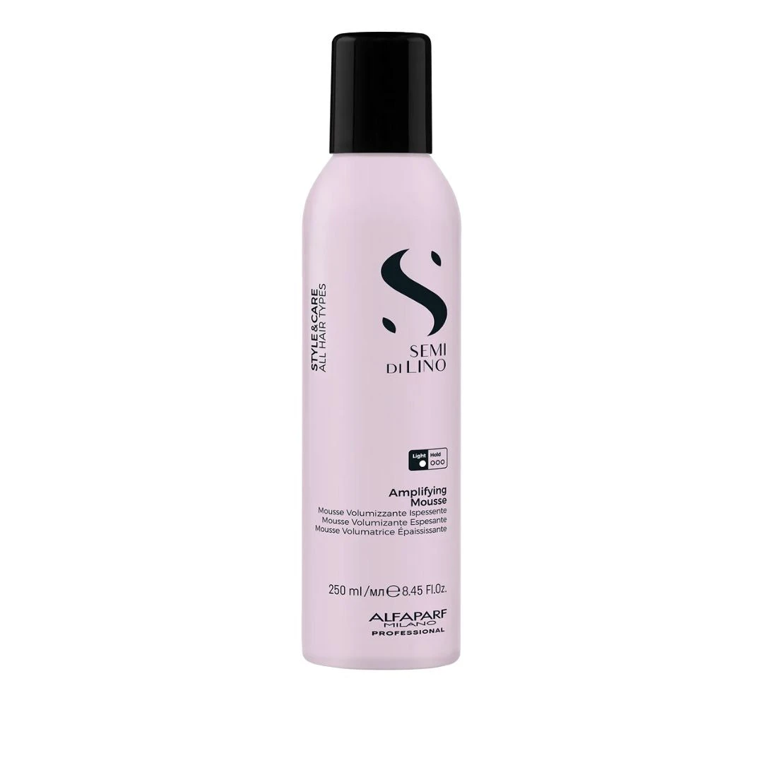Alfaparf Milano Semi Di Lino Styling Amplifying Mousse 250ml amplifies hair fiber leaving hair light and shiny. Light hold. Thermal protection up to 230°C. Doesn’t weigh the hair down. Vegan formula. Floral and fruity fragrance developed to positively influence your sensory experience. For fine and/or thin hair.