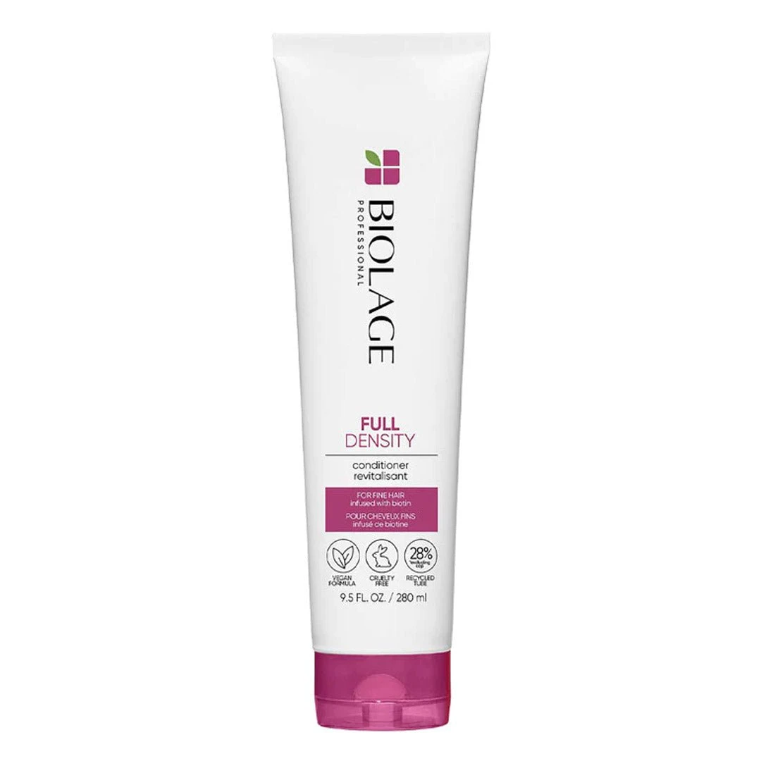 Biolage Full Density Conditioner 280mL for thin hair is infused with biotin and nourishes thinning hair while building hair resiliency from root to tip. This creamy formula leaves hair shiny-looking and soft-feeling.Â