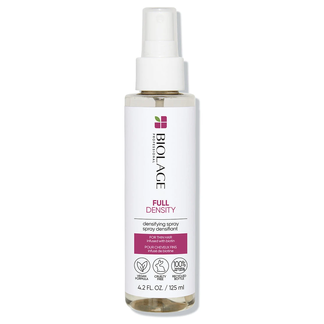 Biolage Full Density Spray Treatment 125ml formulated with biotin, zinc PCA and Gluco-Omega Blend, Biolage Full Density Densifying Spray Treatment works on hair’s surface to increase the diameter of existing strands for fuller-looking, thicker-feeling hair.