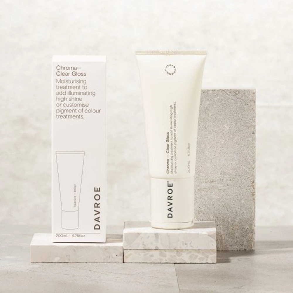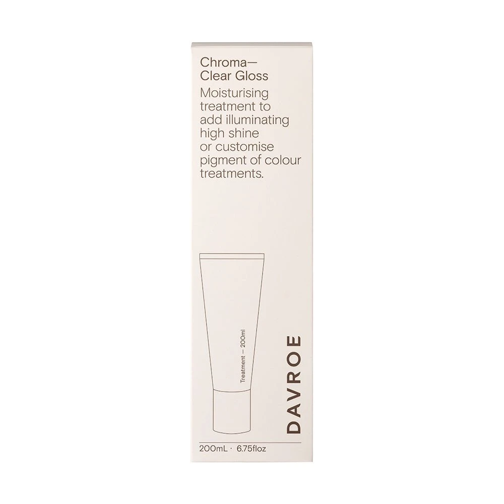 Davroe Chroma Clear Gloss 200ml Davroe Chromas are moisture rich colour treatments, formulated to gently deposit pigment on the hair, whilst leaving it in optimum condition; feeling soft with a beautiful lustre.