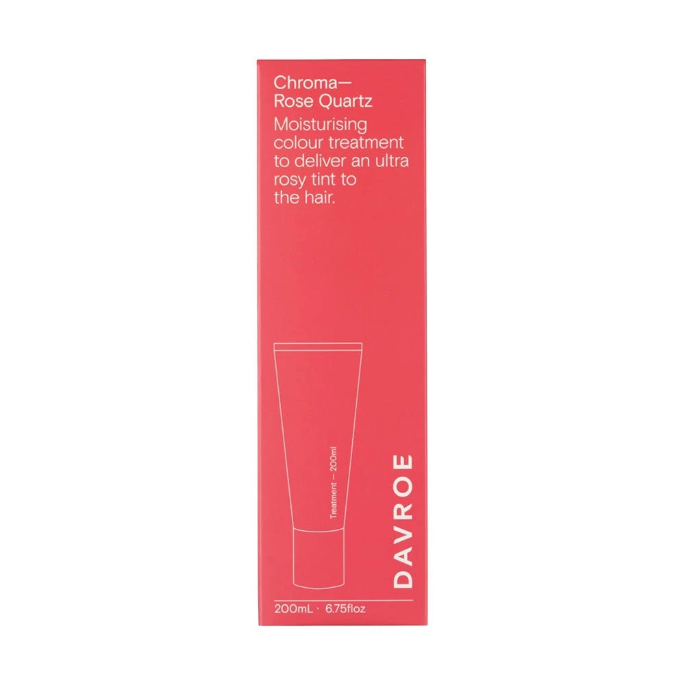 Davroe Chroma Rose Quartz 200ml is a moisturising colour treatment to deliver an ultra rosy tint to the hair. Infused with Rose extract, this Rose Quartz Chroma will create a pink-red hue on medium to light blonde hair, and a rosy tone on light to dark brown hair. Improves hair strength, while adding moisture, leaving hair nourished and revitalised. Improves hair strength, while adding moisture. Contains natural plant and flower extracts.Â