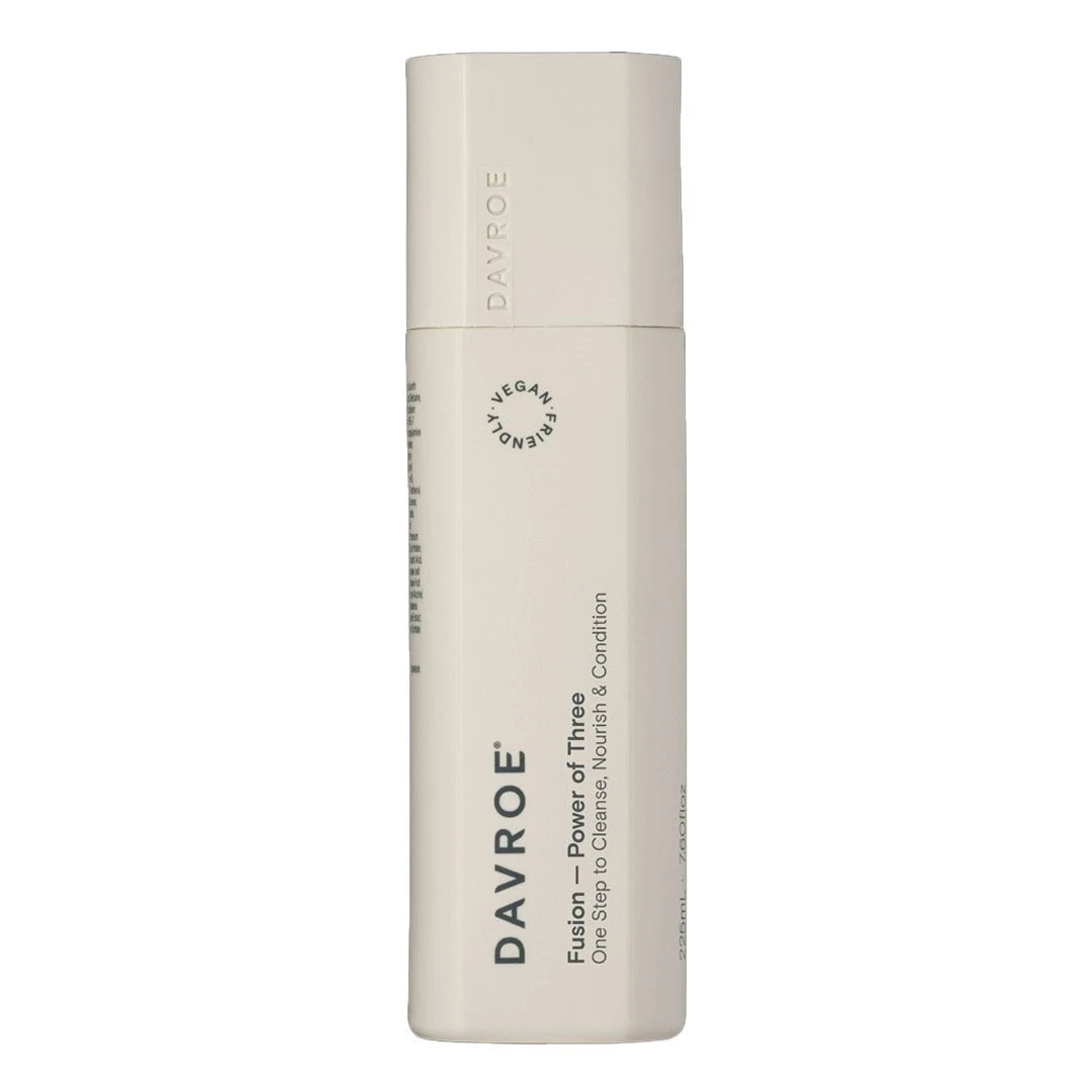 Davroe Fusion Power Of Three 225ml designed to be one step to Cleanse, Nourish & Condition. Fortified with Vitamin B-5 and Shea Butter, this one step, power of three, has been formulated to cleanse and instantly condition the hair, whilst delivering shine, colour and UV protection.