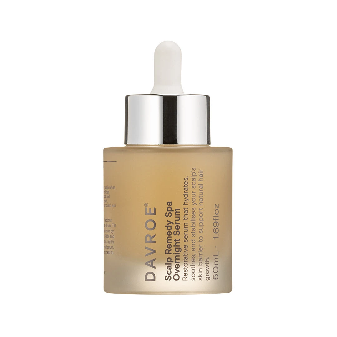 Davroe Scalp Remedy Spa Overnight Serum 50ml formulated to restore your scalp while you sleep, revitalises hair follicles hindering premature hair loss and supporting healthy hair growth. Containing Tea Tree Leaf oil to also aid in increasing sleep quality.