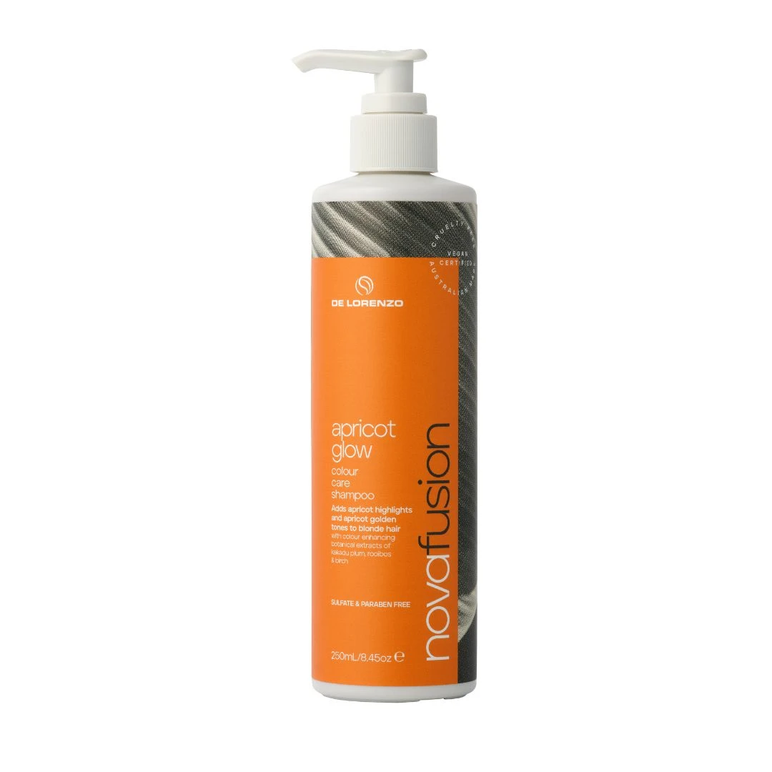 De Lorenzo Novafusion Colour Care Shampoo Apricot Glow 250ml provides apricot highlights and apricot golden tones to blonde hair.