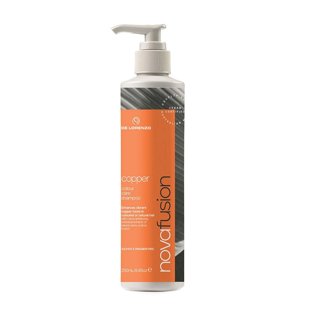 De Lorenzo Novafusion Colour Care Shampoo Copper enhances vibrant copper tones in coloured or natural hair.