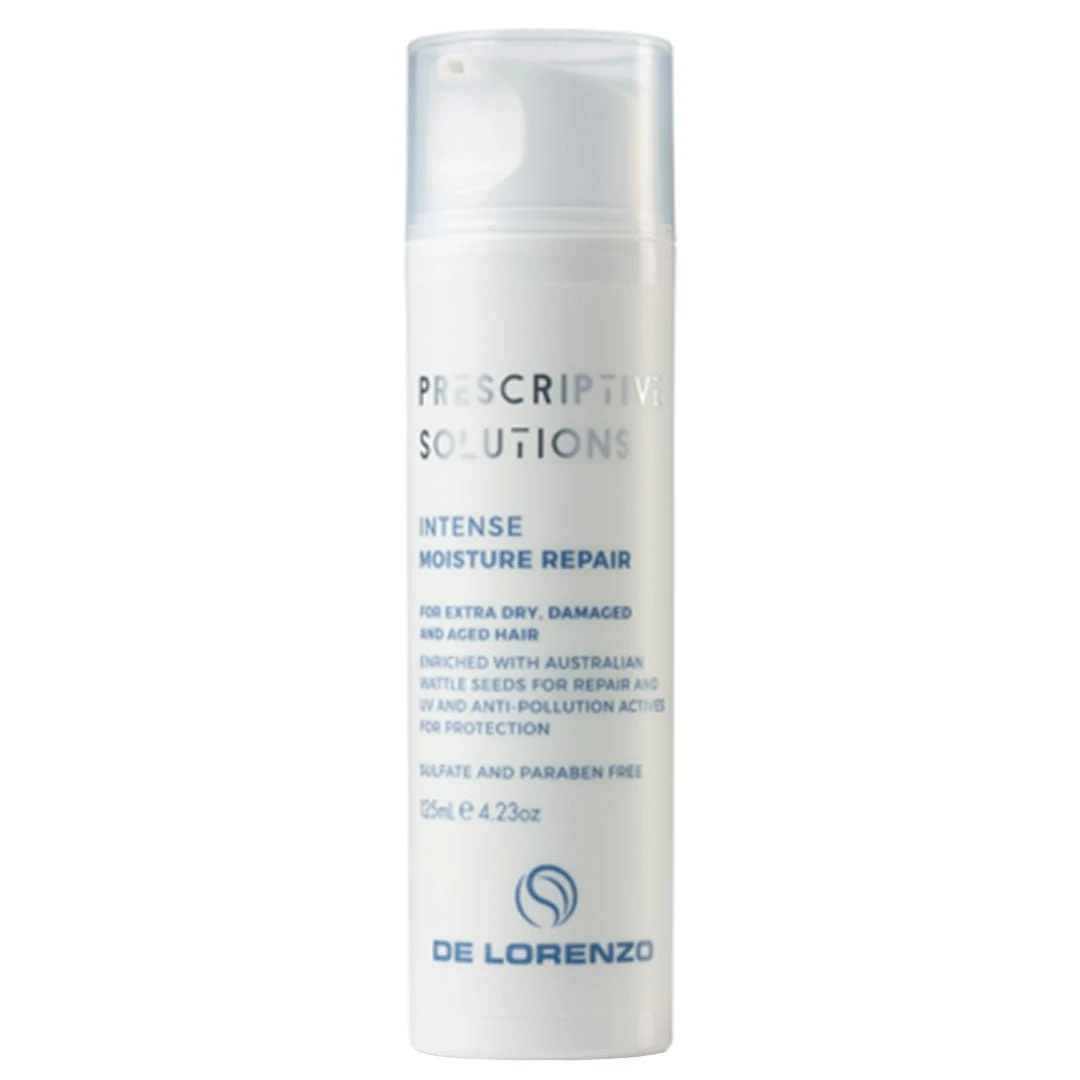 De Lorenzo Prescriptive Solutions Intense Moisture Repair 125ml is a intense repair lotion, designed to hydrate coarse, damaged and aged hair. Moisture Repair is a leave-in product that nourishes hair and provides superior protection from pollutants including UV sun rays, dust and gases. Contains Australian Wattle Seeds and Cacay Oil.