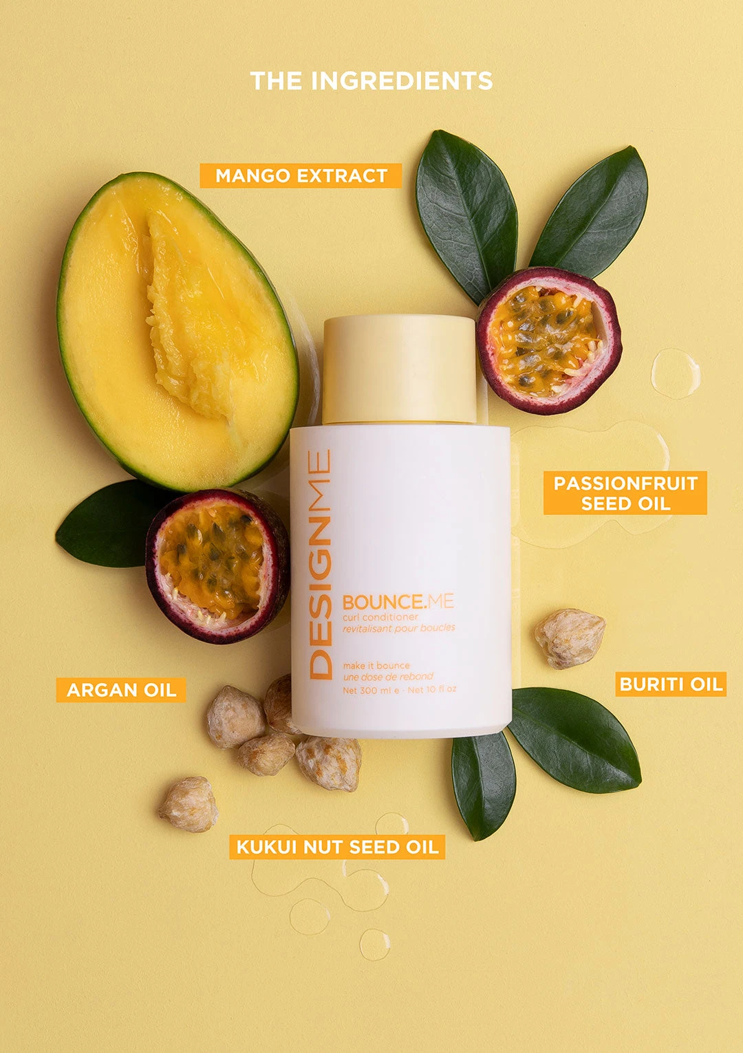 DesignMe Bounce.Me Curl Conditioner 300ml has a rich, creamy formula that moisturizes hair follicles, providing added bounce and shine. This curl conditioner works to protect color while offering anti-static benefits. Nourish, define, and defrizz dry, hard-to-tame textured hair.