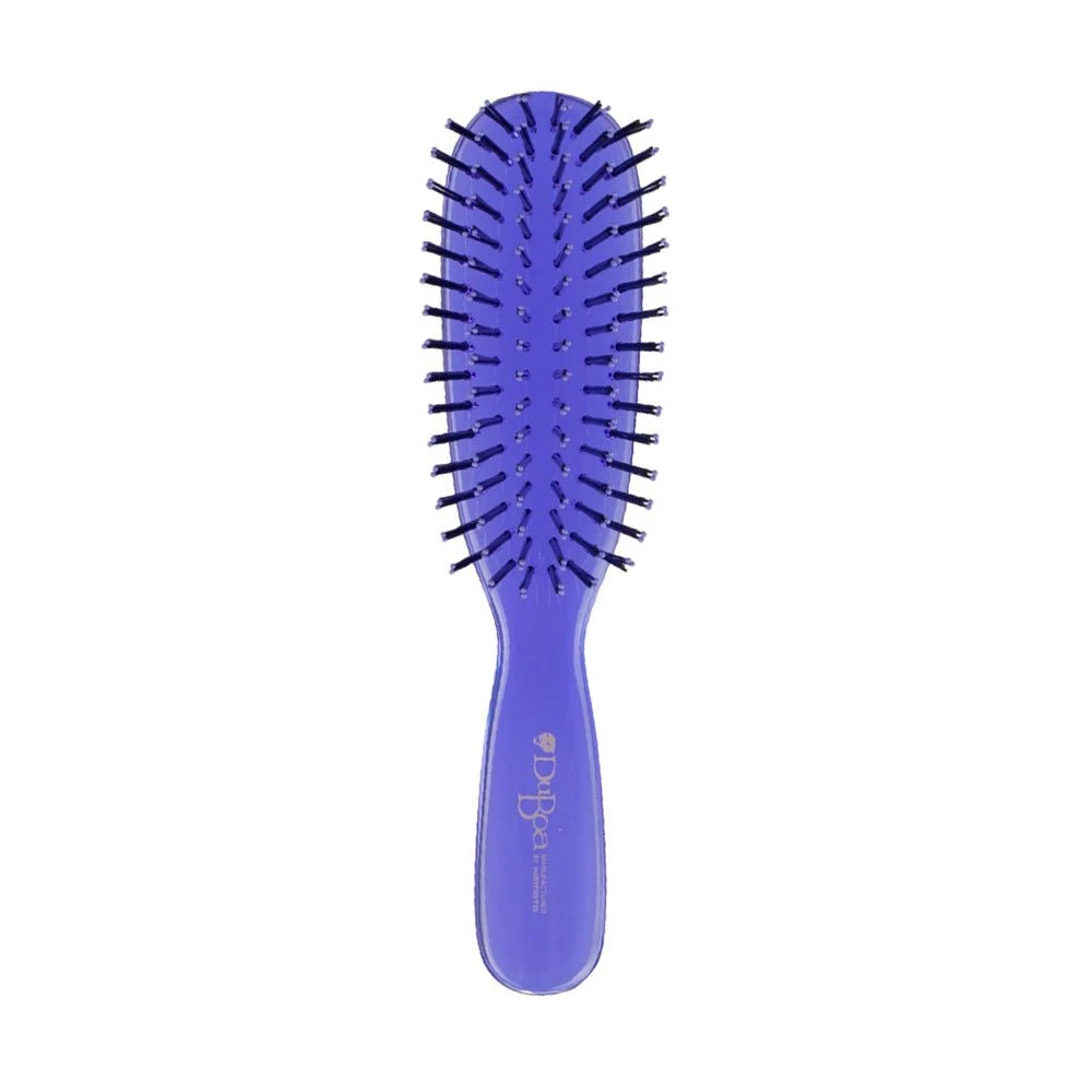 Duboa 60 Hair Brush Medium Purple is a one-of-a-kind Japanese made brush to remove tangles and knots without splitting or tearing even the thickest of hair textures. The extremely flexible nylon pins – four set together – grip hair without causing damage.Â