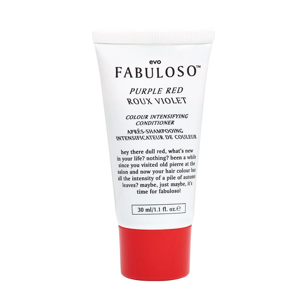 Evo Fabuloso Purple Red Colour Intensifying Conditioner 30ml instantly refreshes, tones, revives, and adds shine to colour-treated hair. This at-home, 3-minute conditioning treatment uses cationic hair dye to help boost colour and keep hair vibrant for longer between salon visits.Â