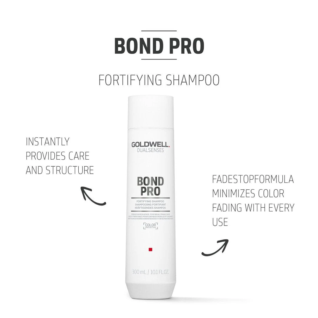 Goldwell Dualsenses Bond Pro Fortifying Shampoo 300ml is the first step towards reducing hair breakage which provides instant strength and resilience for weak and fragile hair. With its FadeStopFormula minimises colour fading with every use.Â