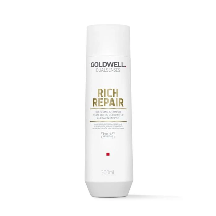 Goldwell Dualsenses Rich Repair Restoring Shampoo instantly reconstructs and reawakens the shine for dry to damaged hair. As gentle as water, the unique FadeStopFormula minimises colour fading with every use.