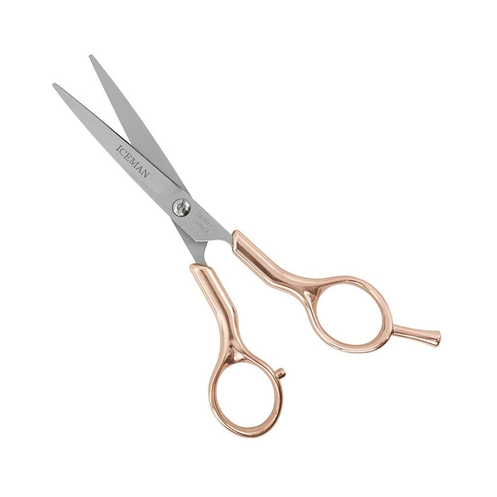 Iceman Serrated Blades Hairdressing 5.75″ Scissors Rose Gold is for professional cutting and trimming of all hair types, wet or dry. With beautiful rose gold handles, offer affordable luxury. Elegant and glamorous, Iceman Rose Gold Hairdressing Scissors features micro-serrated blades for cutting accuracy and durability. Removable finger rest for all your salon needs. Only from Iceman, Cold Hard Steel.