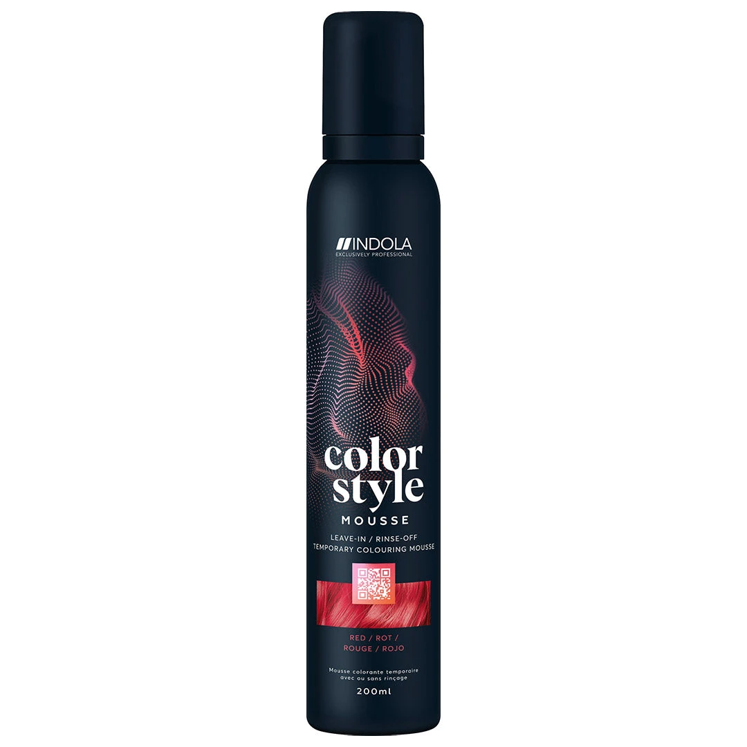 Indola Colour Style Mousse Red 200ml offers a unique temporary direct dye range for a low-commitment hair transformation with styling benefits to colour and style in one easy step, providing instant multi-benefits and unlimited services from refreshment, toning, neutralization and beyond.Â