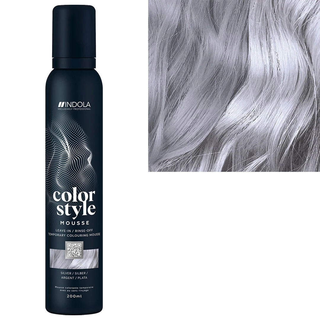 Indola Colour Style Mousse Silver 200ml offers a unique temporary direct dye range for a low-commitment hair transformation with styling benefits to colour and style in one easy step, providing instant multi-benefits and unlimited services from refreshment, toning, neutralization and beyond.Â