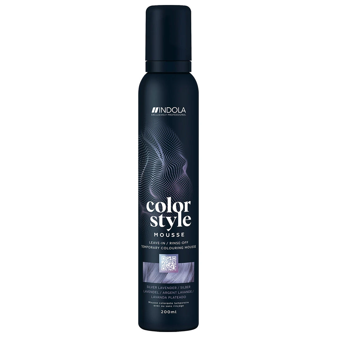 Indola Colour Style Mousse Silver Lavender 200ml offers a unique temporary direct dye range for a low-commitment hair transformation with styling benefits to colour and style in one easy step, providing instant multi-benefits and unlimited services from refreshment, toning, neutralization and beyond.Â