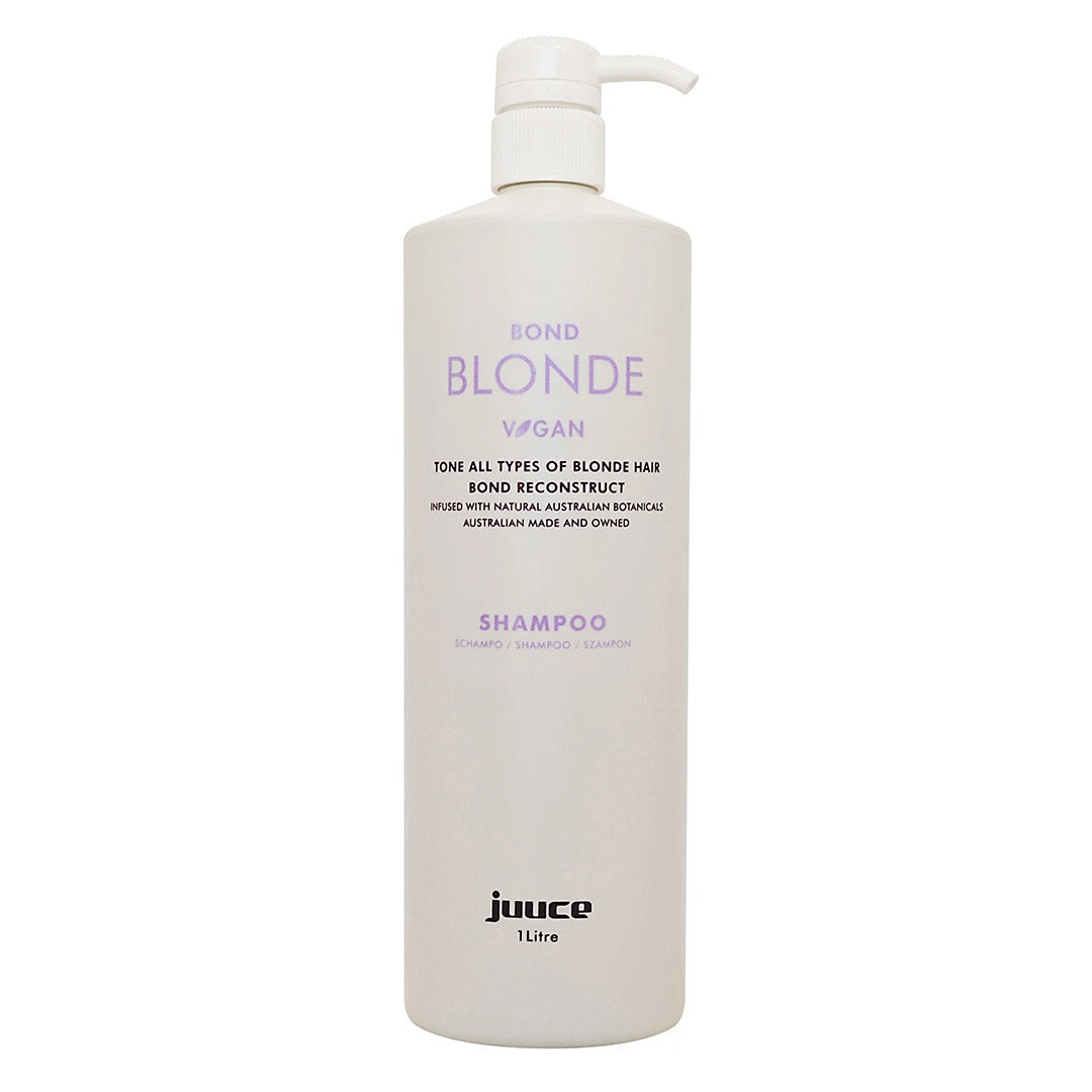 Juuce Bond Blonde Shampoo 1L is a cream moisturising shampoo with extra toning to reduce gold tones for pure blonde hair.Â