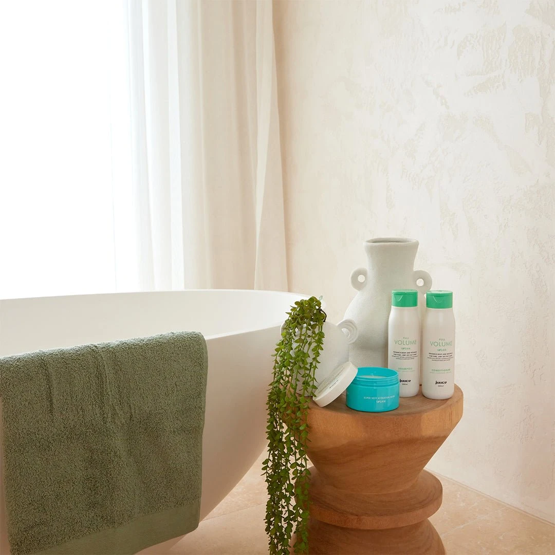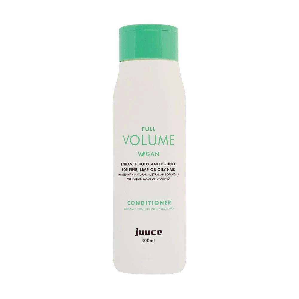 Juuce Full Volume Conditioner 300ml thickens fine, limp hair to boost volume, body and shine while strengthening and protecting.