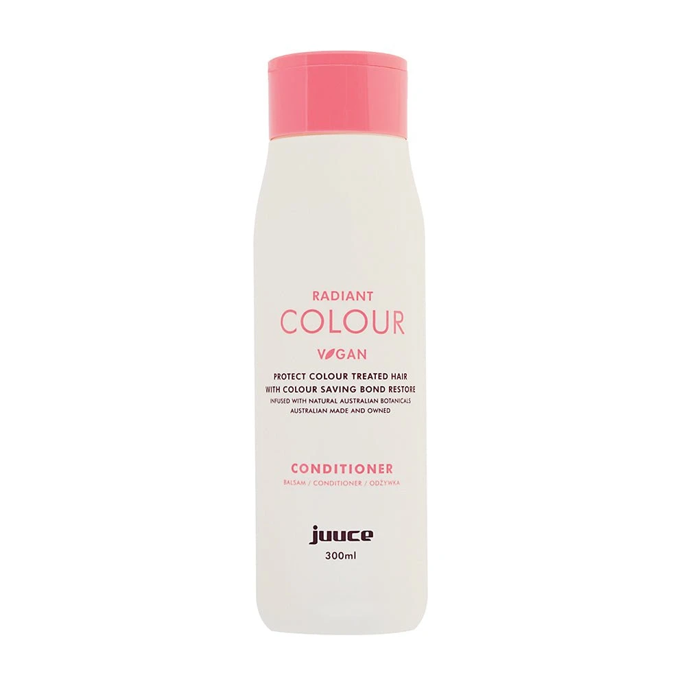 Juuce Radiant Colour Conditioner 300ml detangles, shields and secures colour vibrancy. Suited to all hair types.Â
