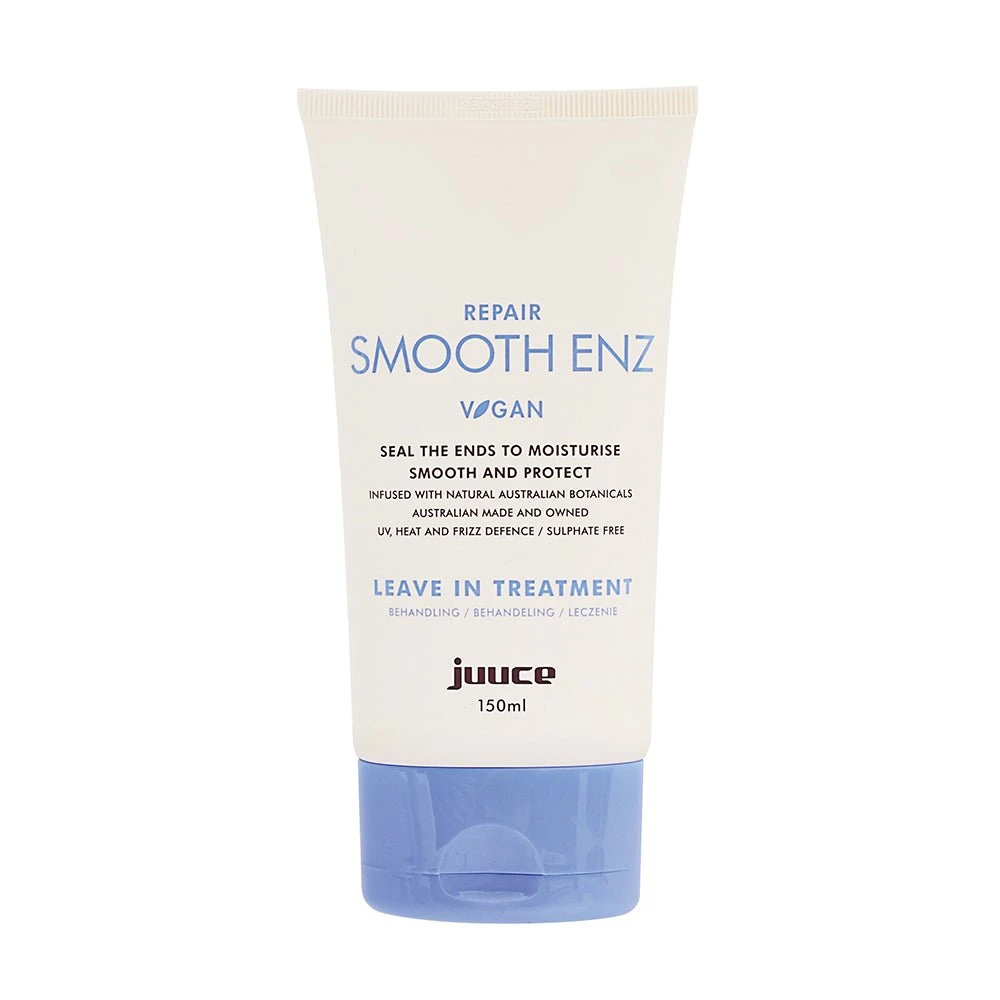 Juuce Repair Smooth Enz 150ml this moisture-smoothing formula with avocado extract helps manage split ends, defrizz, and restore shine, softness, and nourishment to distressed hair.