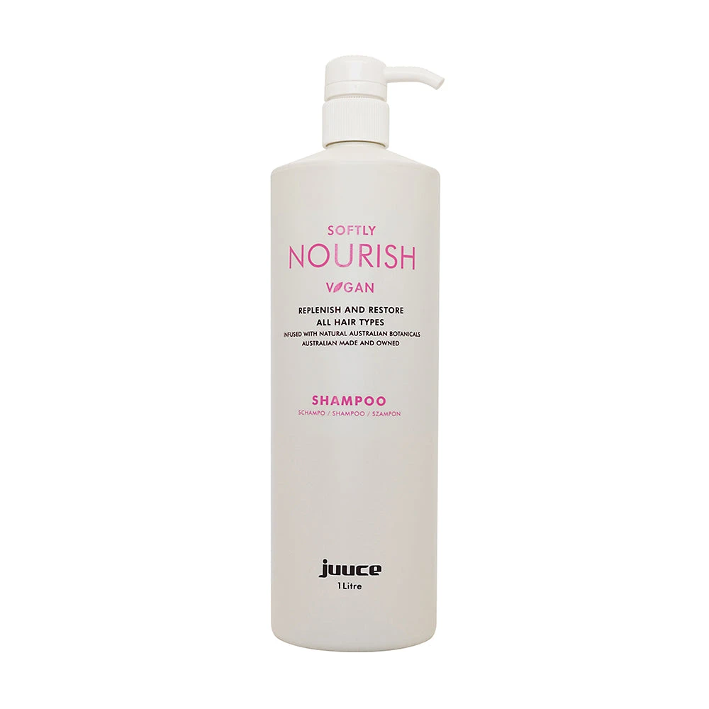 Juuce Softly Nourish Shampoo 1L effectively softens, nourishes and strengthens hair, while promoting long-lasting color for all hair types. Featuring botanicals from Australia and Argan Oil from Morocco, it helps restorative luster, suppleness, and beauty to hair.