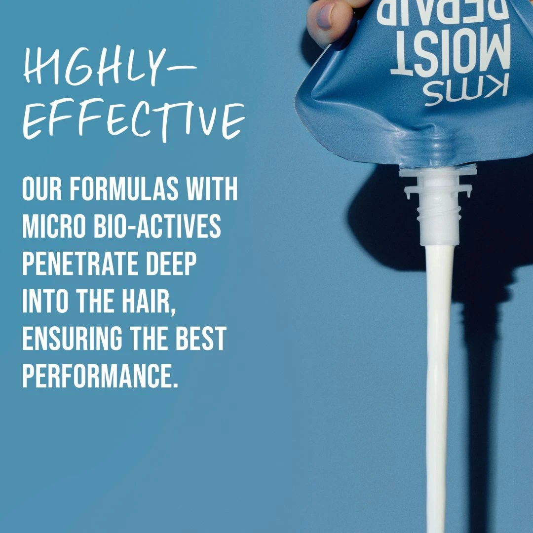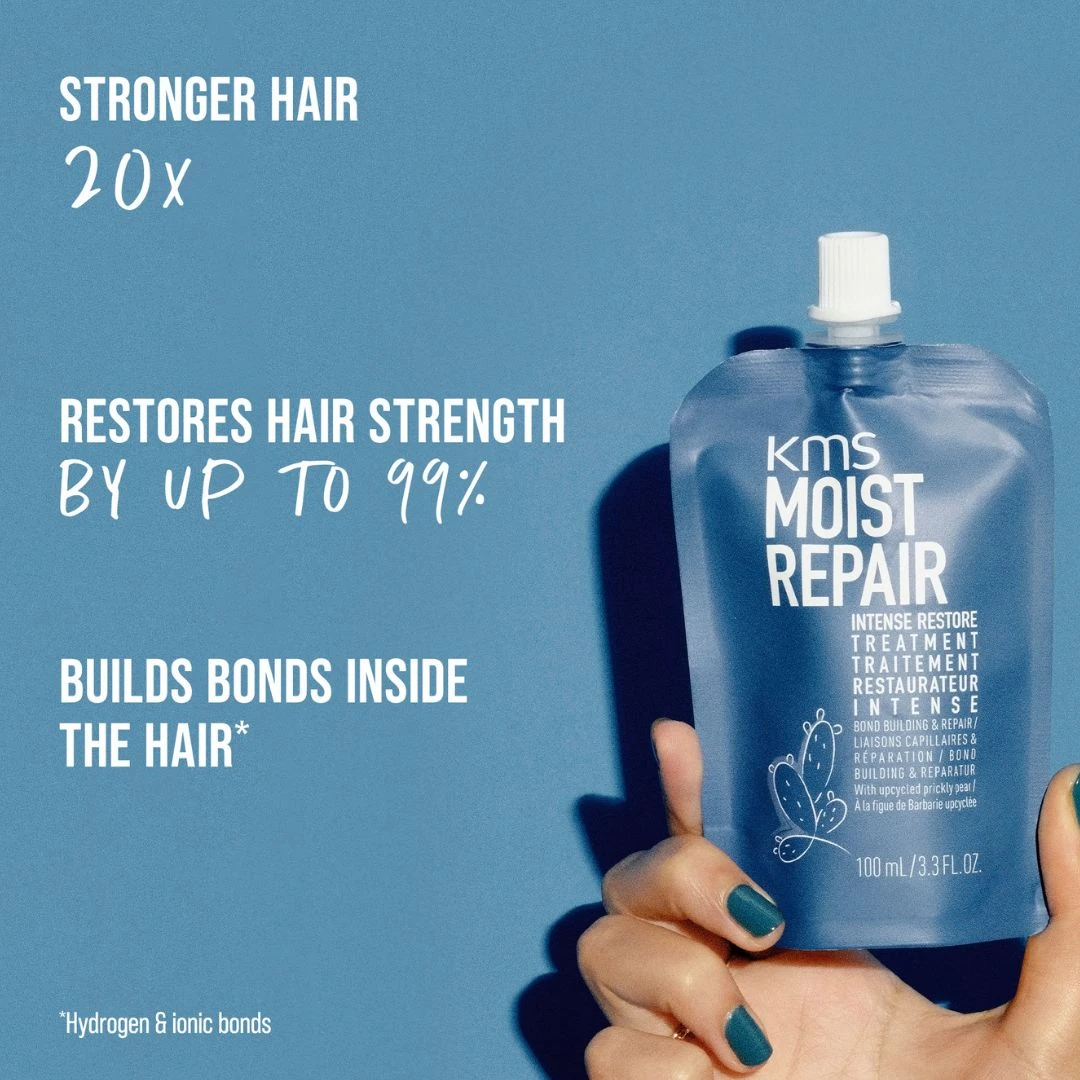 KMS Moist Repair Intensive Restore Treatment 100ml reconstructs damaged hair structures, strengthens & protects from damage. Reduces breakage & split ends by up to 99%. Restores hair’s natural protective power and instantly replenishes moisture without weight.