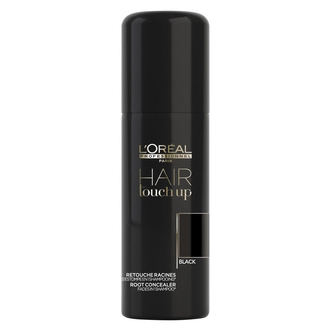 L’oreal Professionnel Hair Touch Up Black 75ml is a temporary root touch-up spray that fades in 1 shampoo. The professional pigments will get you through the last days before your next colour appointment.