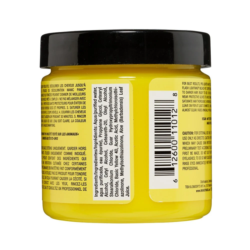 Make yellow versions of your favorite Manic Panic semi-permanent hair colours. Hair colours are ready to use, do not mix with peroxide.
