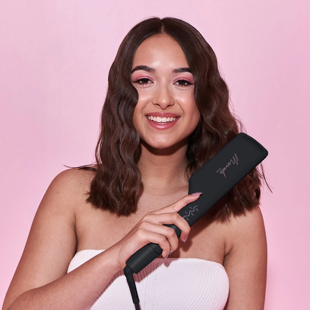 Mermade Hair Double Waver Black proves the “less is more” philosophy. With its innovative double barrel design & anti-scald plates, this styler effortlessly creates dreamy, medium-sized or “mini” waves that are guaranteed to turn heads.