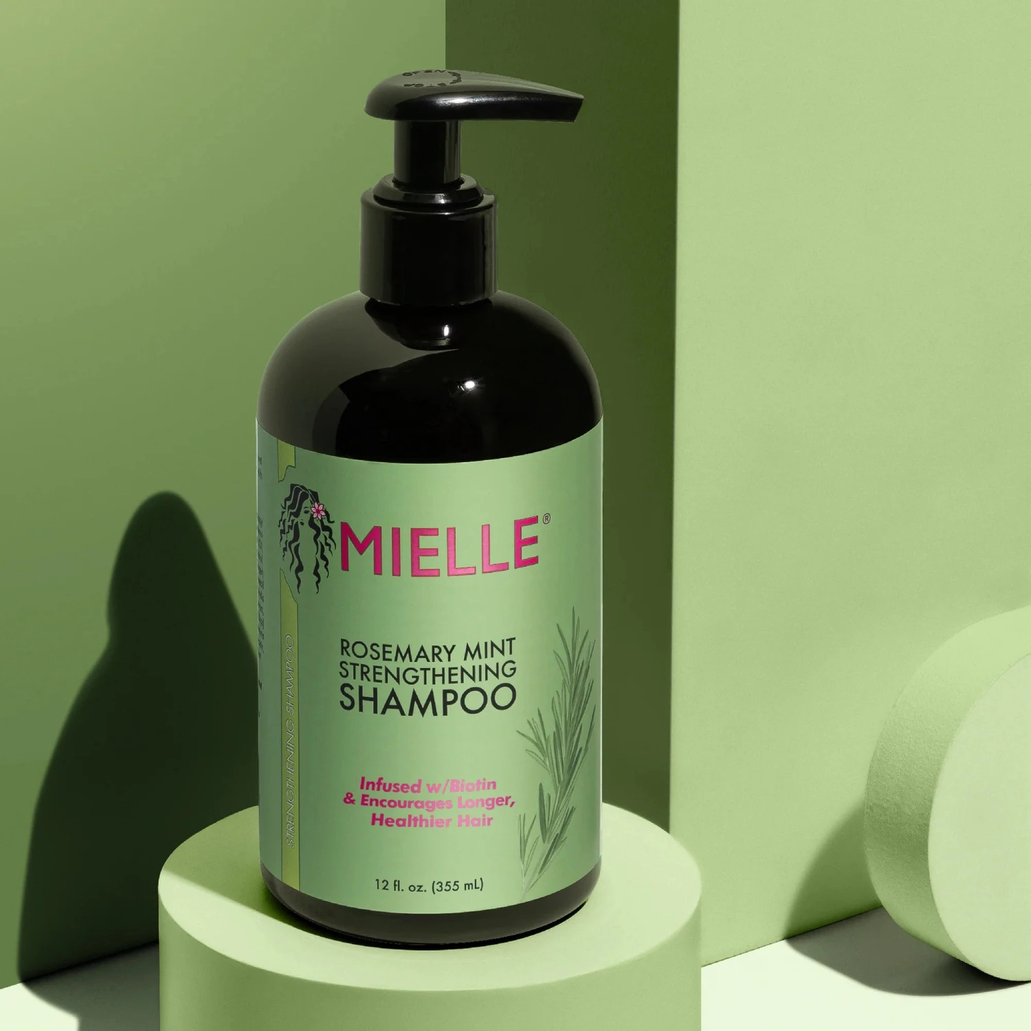 Mielle Rosemary Mint Strengthening Shampoo 355ml this shampoo was developed to gently cleanse your hair while delivering essential nutrients. Infused with hair-strengthening biotin and certified organic ingredients like coconut and babassu seed oil, it revitalises weak or brittle hair.