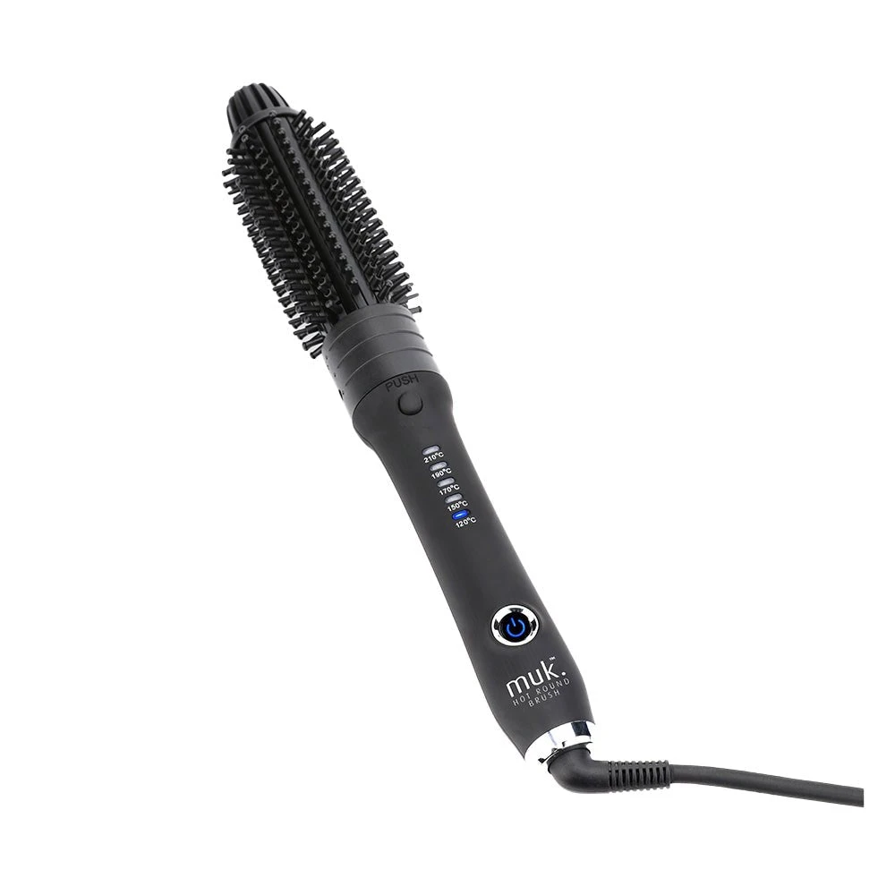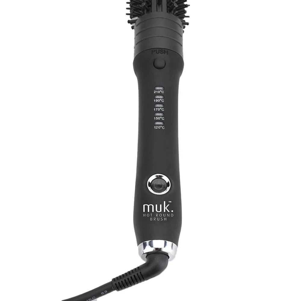 Tip: Prior to using the Muk Hot Round Brush, spritz Hot Muk Thermal Protector spray on damp hair and dry completely with Muk Blow 3900-IR Professional Hairdryer. When styling is complete, use Hot Muk 6-in-1 Working Spray for hold or Hot Muk Serum for a smooth and polished look.