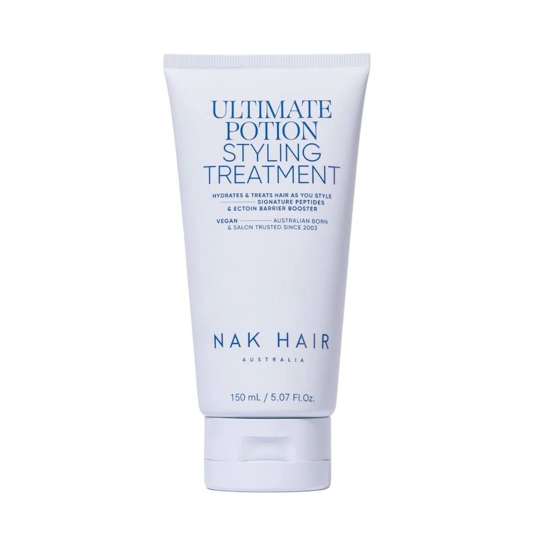 NAK Signature Ultimate Potion Styling Treatment 150ml is a thirst-quenching styling serum with a light texture, designed to treat and hydrate hair as you style.