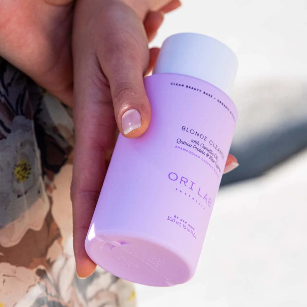ORI Lab Blonde Cleanse 300ml brightening cleanser designed to repair, nourish and tone hair fabric. Infused with Beauty Boosters of Camellia Oil, Quinoa Protein and Blue Cypress which assist to eliminate unwanted warmth, strengthen the cuticle and add shine.