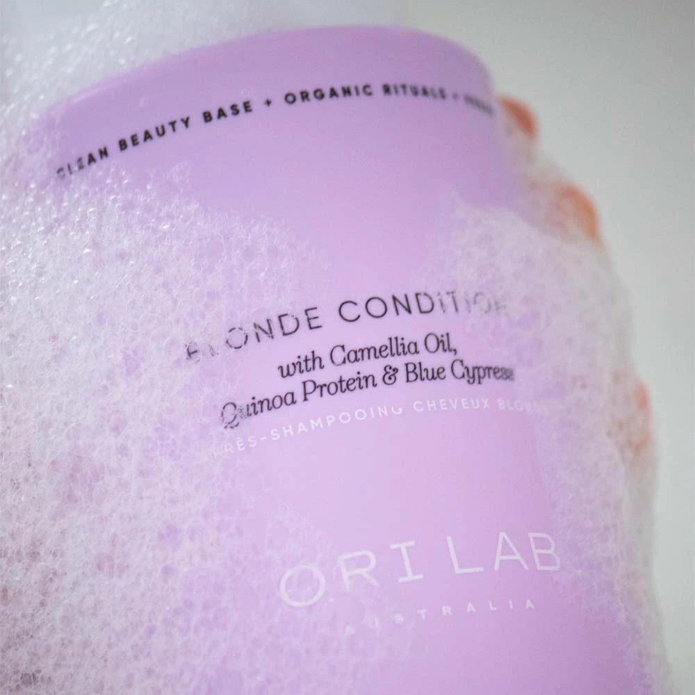 ORI Lab Blonde Condition 100ml a brightening formula designed to repair, nourish and tone hair fabric. Infused with Beauty Boosters of Camellia Oil, Quinoa Protein & Blue Cypress which assist to eliminate unwanted warmth, strengthen the cuticle and add shine.