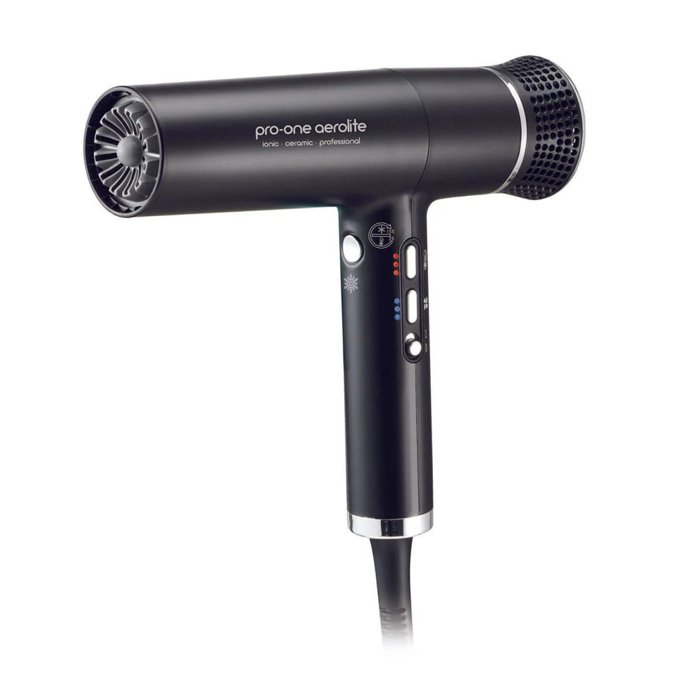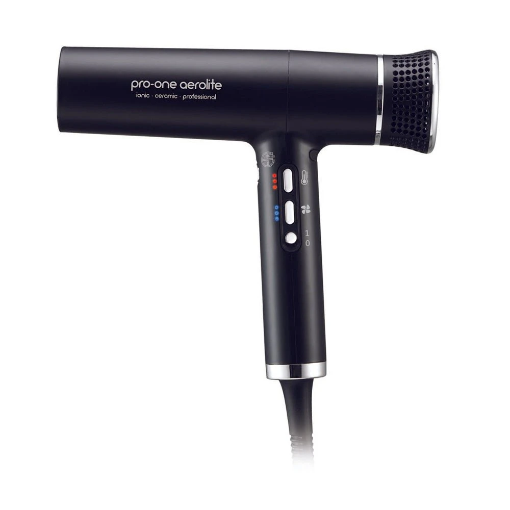 Pro-One Aerolite Ionic Ceramic Professional Hairdryer Black is our most powerful hair dryer with Diffuser, It is the ultimate upgrade to your hair styling routine. Not only is this small blow dryer extremely lightweight, but it has been engineered with one of the most expensive and advanced motors in the market.