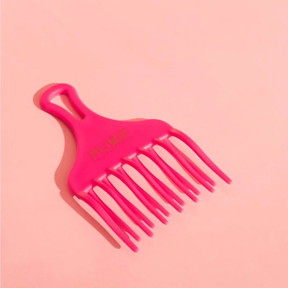 Pump Haircare Pink Detangle Comb is curl friendly, has a wide tooth comb to handle the thickest hair, this comb is tough. The fork like points leave enough space to not pull or frizz up curls.
