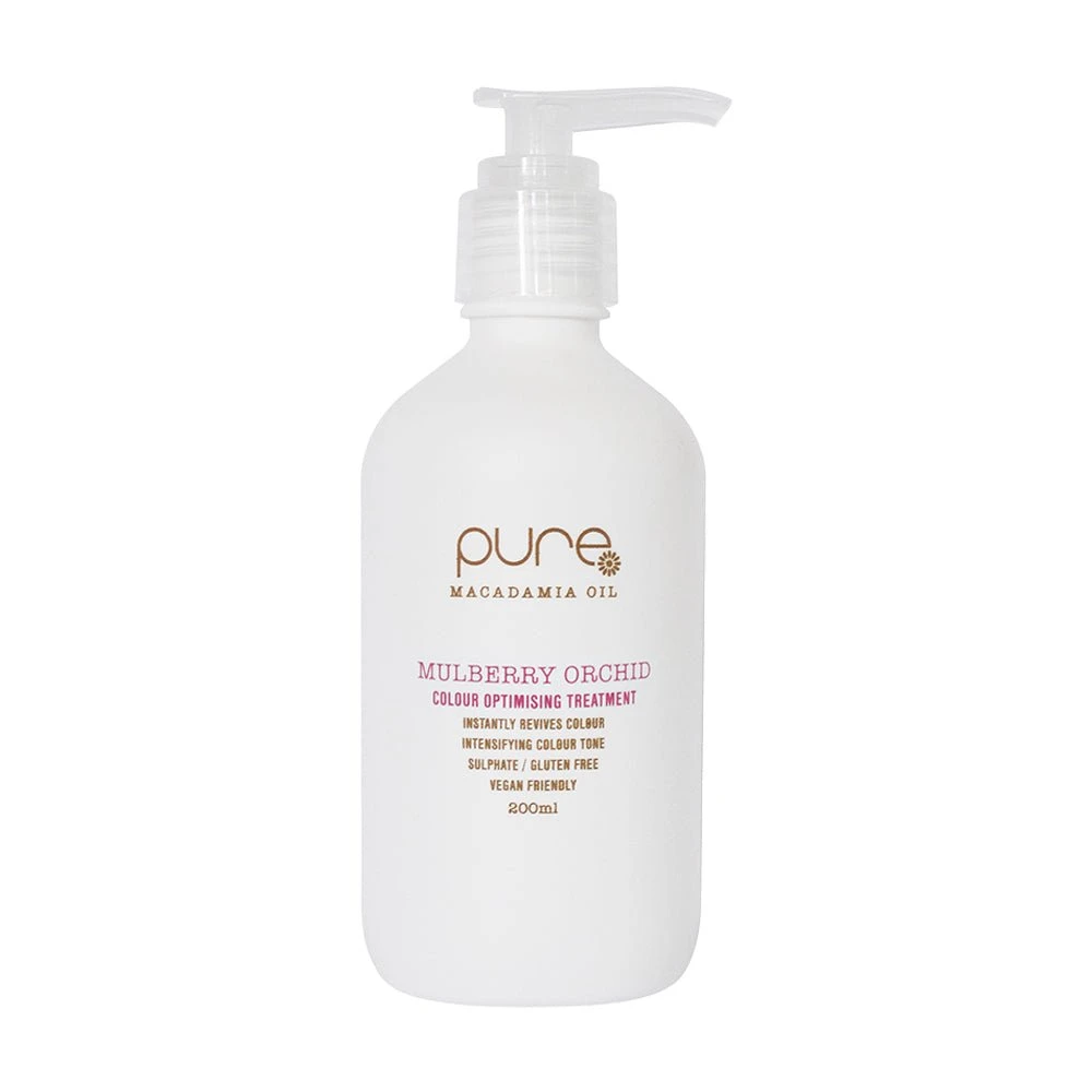 Pure Colour Optimising Treatment Mulberry Orchid 200ml is a formulated nourishing treatment that will enhance and add mulberry tones to darker hair. When applied to lighter hair it will create deeper pink/mauve tones.