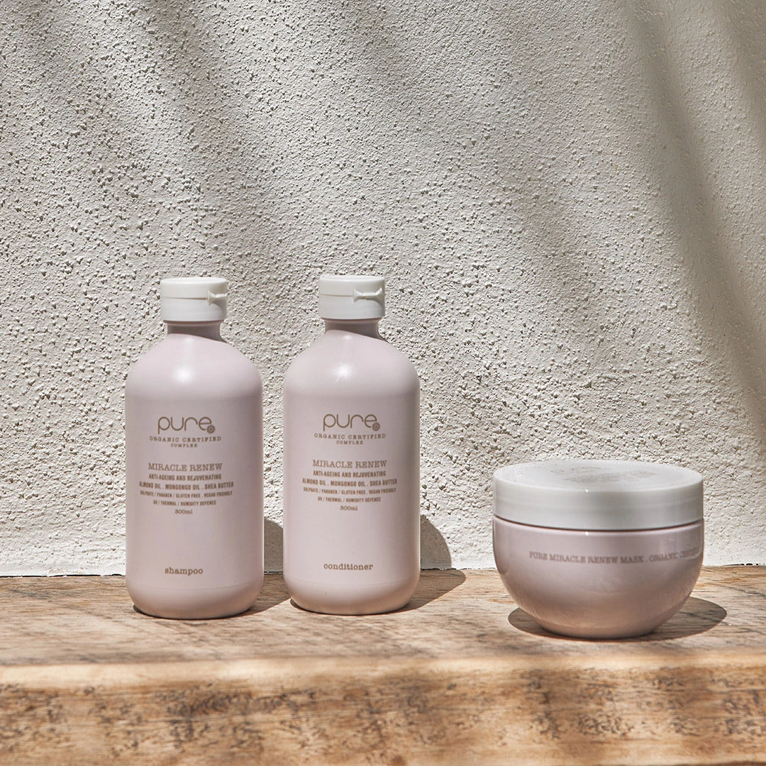- Exclusive Pure Complexâ„¢ (100% organic extracts) rejuvenates and restores healthy moisture balance to hair and scalp.