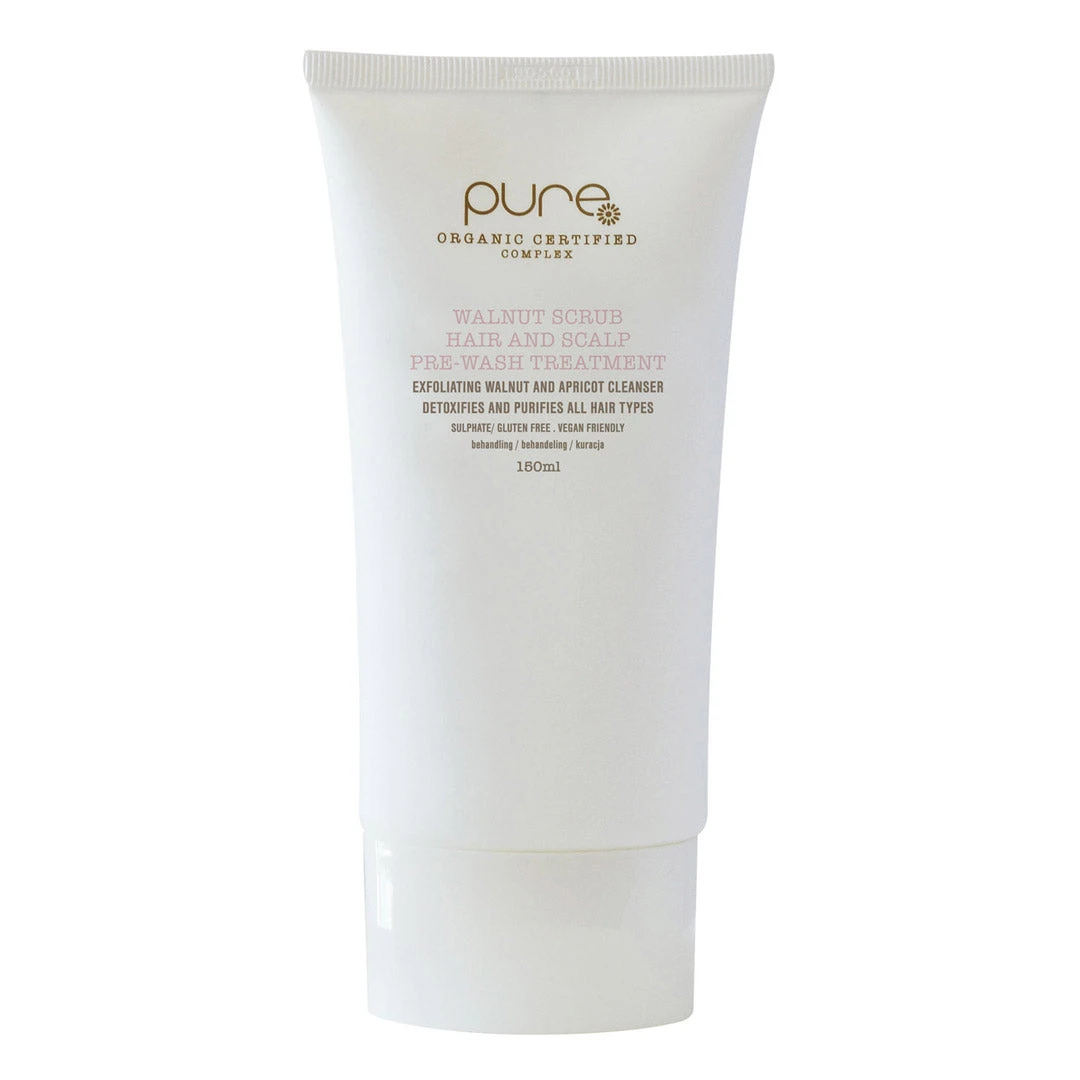 Pure Walnut Scrub Hair and Scalp Pre-Wash Treatment is an exfoliating cleanser with walnut and apricot to detoxify and purify all hair types.
