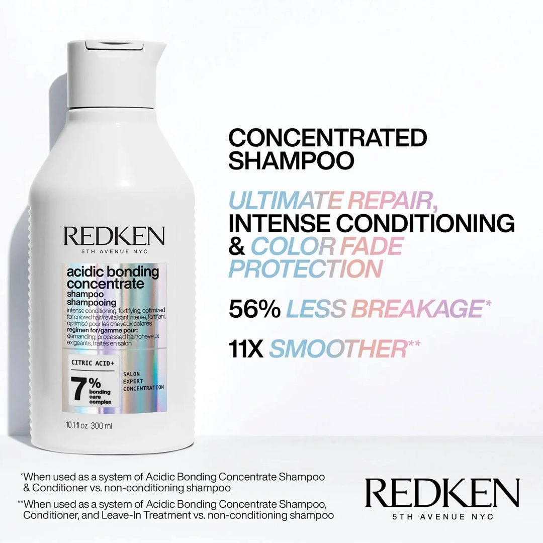 Redken Acidic Bonding Concentrate Shampoo 300ml is a pH-balancing shampoo formulated for all types of damaged hair. This ultra-rich, sulfate-free shampoo provides ultimate strength repair, intense conditioning and colour fade protection to weakened hair.