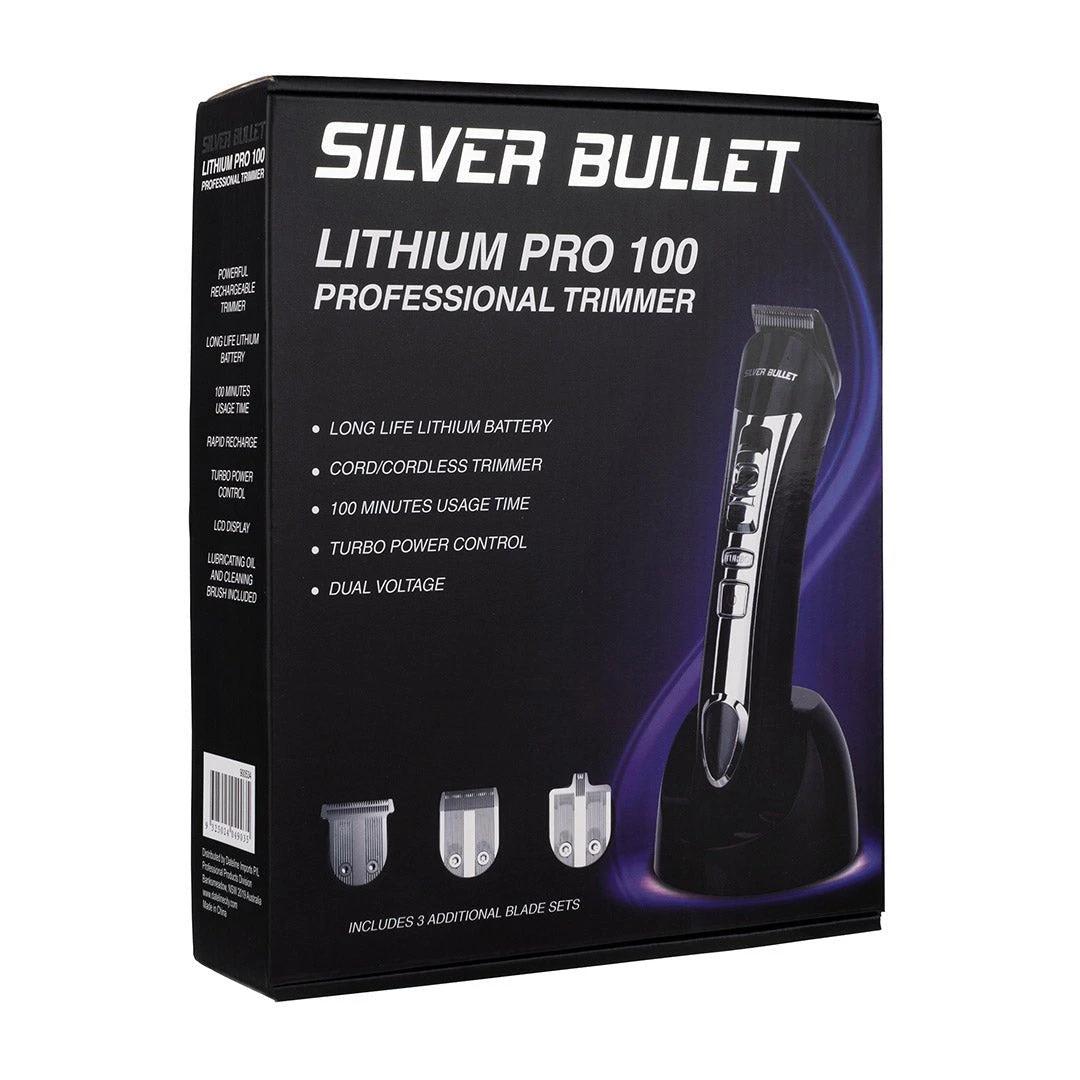 Silver Bullet Lithium Pro 100 Trimmer is a powerful, rechargeable trimmer of optimum professional quality. When professional stylists Australia-wide think of speed, they think of Silver Bullet and that’s exactly what the Silver Bullet Lithium 100 Pro Hair Trimmer delivers.