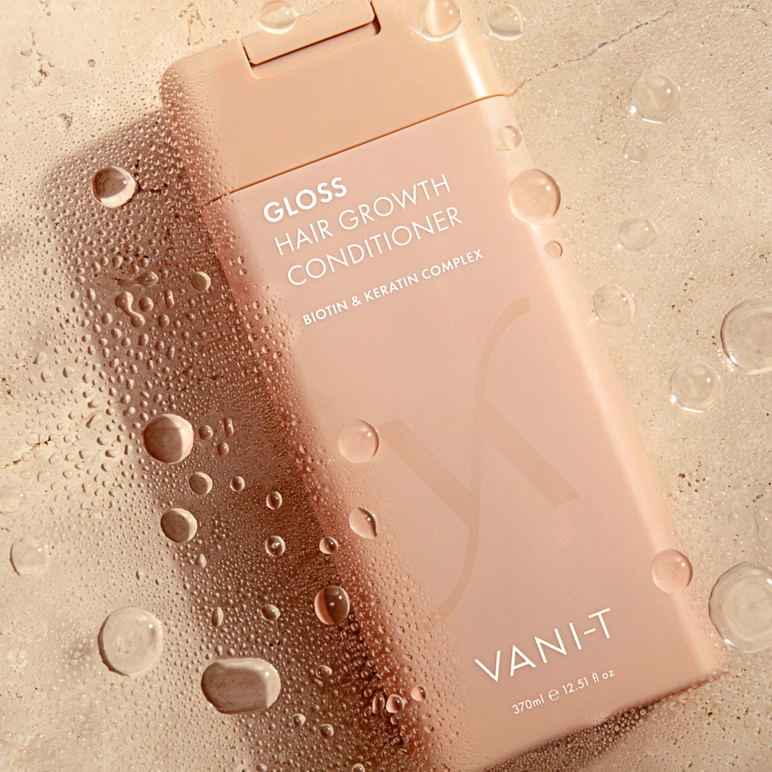 Vani-T Gloss Hair Growth Conditioner 370ml improves thickness while this luxurious formula calls on the big guns when it comes to fighting hair loss and promoting hair growth: Biotin, Keratin, Caffeine and Argan Oil. An added infusion of bio-stimulating copper peptides amplifies hair growth for glossy, thicker, healthier looking hair. Suitable for all hair types.