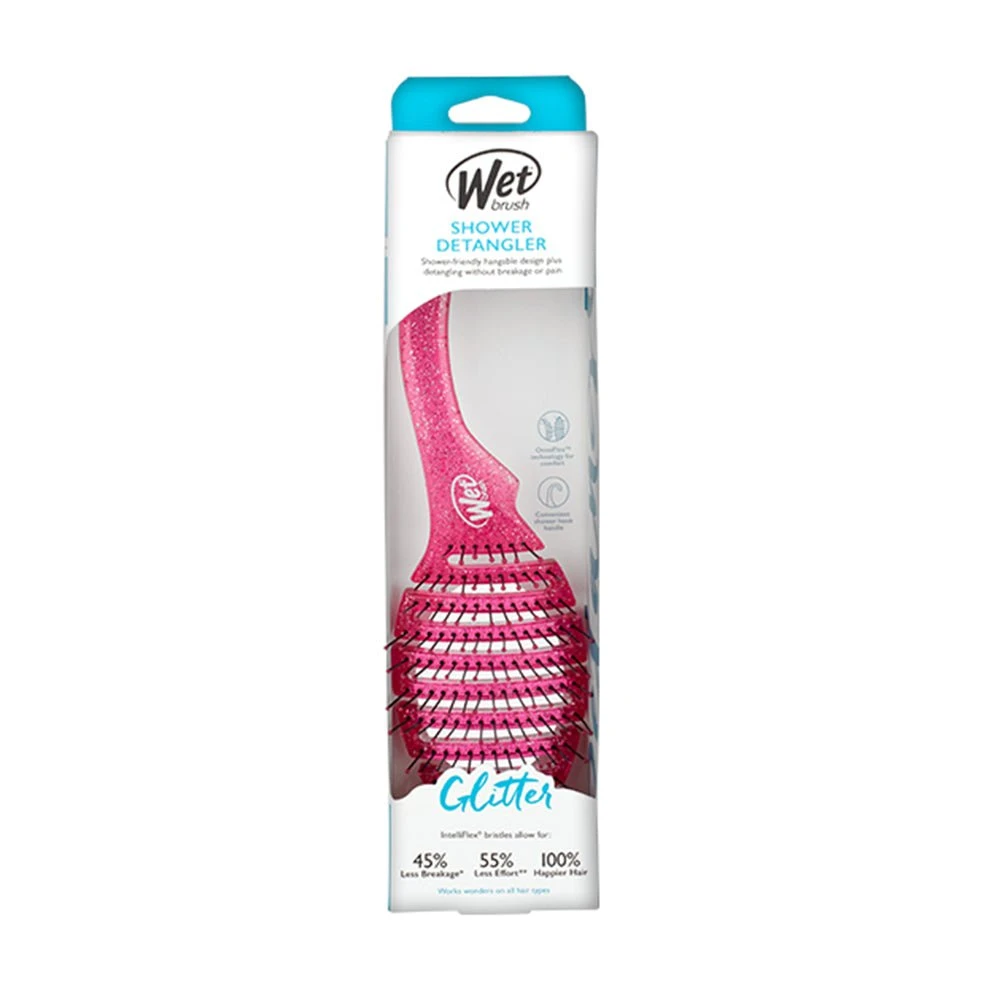 Wet Brush Shower Detangler Brush Glitter Pink featuring exclusive, ultra-soft IntelliFlex bristles which glide through tangles with ease. Minimizes pain, split ends and breakage. Lets you brush with less force, so you can detangle with less damage to your hair.