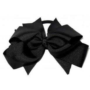 Where on Earth Hair XL Bow Tie Black are made from grosgrain ribbon and measure approximately 12cm x 10cm. attached to a black hair elastic. Available in various colours to blend with school uniforms, sports uniforms and house colours.